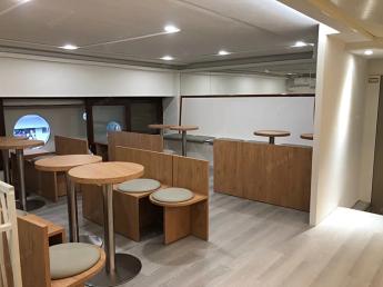 本店為樓中樓格局一樓室內約11坪為吧檯工作區內梯二樓約12坪為客坐區可坐16人及廁所還要儲藏室